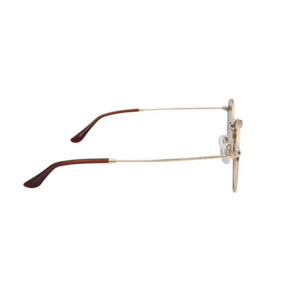 | Color | Gold tone frame, warm brown lenses, dark red temple tips |