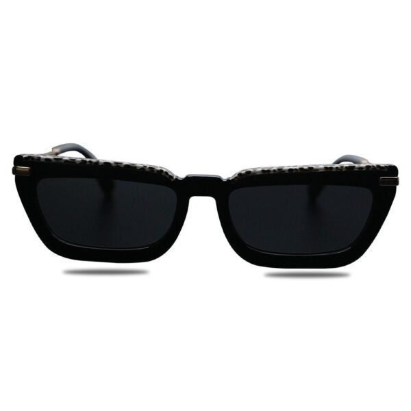 Jimmy Choo Sunglasses JC-Vela G S FP3 IR 55 is a polished black and gold frame with a grey lens and is designed for women. It is a large style with a 55mm lens diameter. The bridge size for this model is 18mm and the side length is 145mm. This adult designer sunglasses model is a metal & plastic, full rimmed frame with a rectangle shape