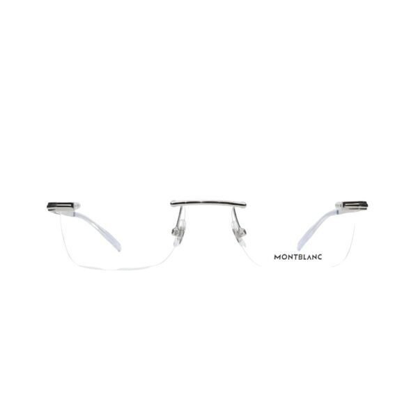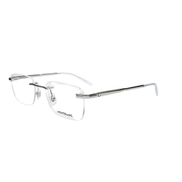 Montblanc MB0279O 001 – A premium rimless optical frame with silver accents for a refined, minimalist look.