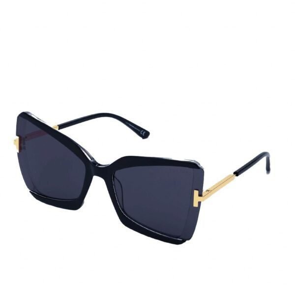 Tom Ford Gia Sunglasses TF766 03A 63 is a polished black, crystal, and gold frame with a smoke lens and is designed for women. It is an extra large style with a 63mm lens diameter. The bridge size for this model is 19mm and the side length is 135mm. This adult designer sunglasses model is a plastic, full-rimmed frame with a butterfly shape.